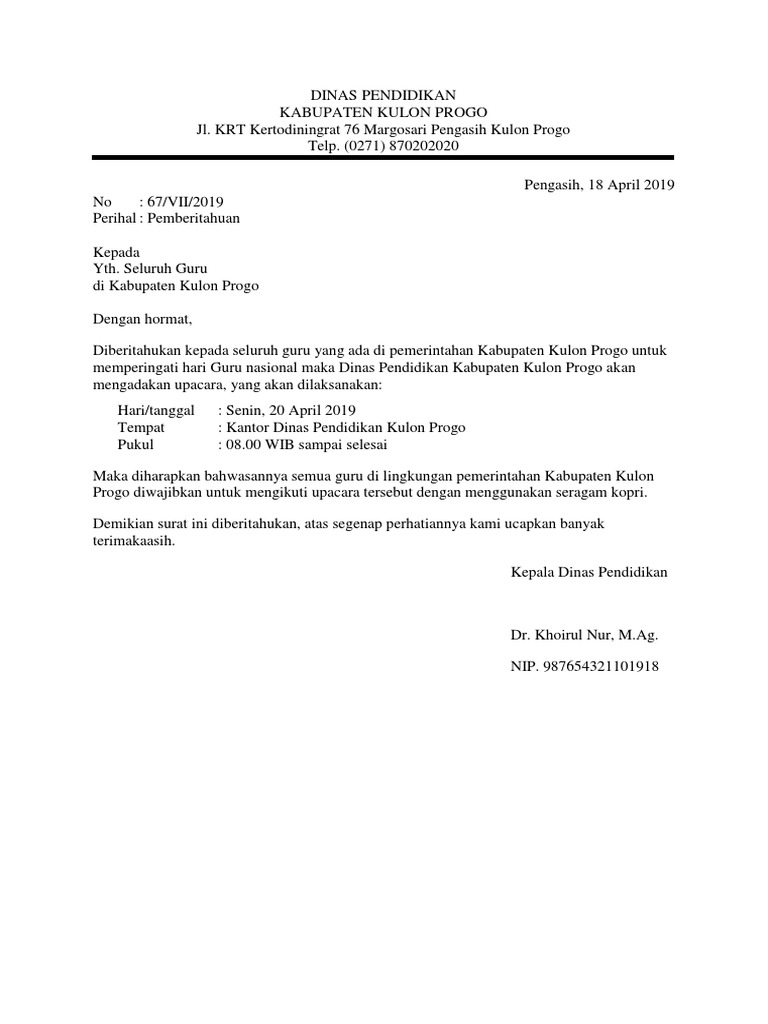 Surat dinas adalah sebuah surat yang dibuat dengan bahasa formal dari suatu instansi baik pemerintah maupun swasta, dimana surat tersebut memiliki tujuan kedinasan antar instansi. Pemerintah kabupaten banyumas dinas pendidikan smk harapan bangsa jalan pramuka no 1. Surat tugas biasanya akan dikeluarkan ketika ada salah satu karyawan dari perusahaan, lembaga pemerintahan atau instansi yang lainnya untuk menugaskan pekerjaan diluar. (021) 5674321 / fax (021) 6765453 email sekarang kita lanjutkan ke contoh surat dinas, ada beberapa jenis contoh surat dinas yang akan kami berikan dibawah ini, dari surat dinas. Pemerintah provinsi yogyakarta dinas pemuda dan olahraga kabupaten bantul jl. Inilah contoh surat permohonan dinas sebagai acuan yang dapat dimodifikasi. Pada kesempatan yang lalu kita telah membahas banyak sekali contoh surat, salah satunya yaitu contoh surat penawaran dan pernyataan. Isi surat dinas sendiri merupakan permasalahan kedinasan seperti pemberitahuan suatu izin. Contoh surat edaran dinas perindustrian. Contoh surat dinas pemerintah kabupaten dan universitas. Surat dinas pada umumnya berisi sebuah perintah atau sebuah undangan kepada instansi ataupun kepada individu. Walaupun esksistensi surat memang sudah lumayan menurun dikarenakan canggihnya teknologi, namun masih banyak pihak. Namun sebelum membuatnya, apakah kamu sudah paham mengenai surat dinas itu sendiri?