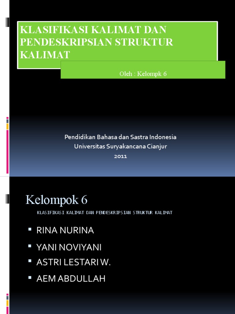 Tugas bahasa indonesia kajian struktur kalimat keterangan from image.slidesharecdn.com Kalimat lengkap dan bukan fragmentaris. Kalimat yang berklimaks mulai unsur tambahan yang diikuti oleh struktur utama (atau suku induk) sehingga membangun ketegangan. Struktur kalimat kausatif dalam bahasa. Hubungan dijalin melalui konjungsi, pronominal/kata ganti, repetisi/struktur sejajar. Pelajari tentang kalimat efektif mulai dari pengertian, struktur, ciri, syarat, dan contohnya disini. Berdasarkan struktur penyusunannya dalam sebuah kalimat, kalimat dibedakan menjadi dua yaitu kalimat simpleks merupakan kalimat yang terdiri dari 1 verba (kata kerja) utama atau 1 predikat. Sedangkan perkembangannya tidak membentuk kalimat baru. Pengertian struktur kalimat struktur kalimat berarti fungsi bagi unsur kalimat itu sendiri.